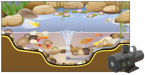 Our Hybri-Pond kits offer two pumps. One pump to run the stream and or waterfall and one pump to run the circulation jets. This way, when you want to turn the waterfall or stream off you will still have water movement in the pond.