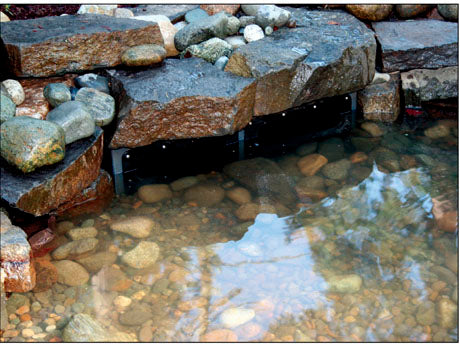Give any water feature a natural look with the Filtrific® Waterfall Starter. Its versatile rock-bearing design neatly disguises it in any landscape, allowing only the water and natural elements to be seen. A waterfall starter is included in each Berkey Pond and Hybri-Pond Kit.