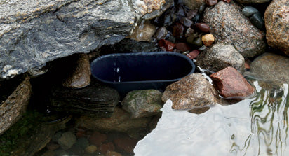 The Filtrific fixed skimmer allows you to have a finishing pool at the end of your stream and the water will all disappear into the filter tank when the system turns off. In nature, streams and waterfalls rarely end abruptly into
