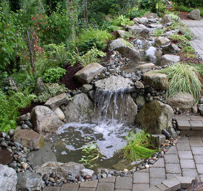 The Springbrook Waterfall and Stream Kits allow for easy customization of the waterfall and stream layout,