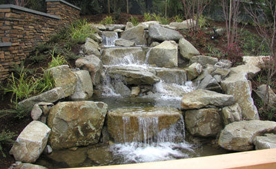 The Cascade waterfall and stream kits allow for easy customization of the waterfall and stream layout. With various rock